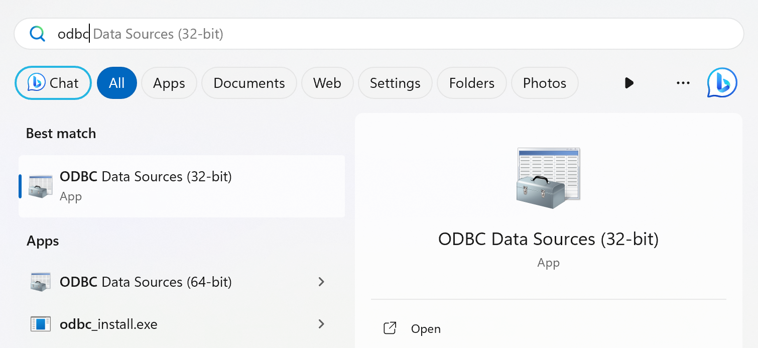 After the installation, it is possible to change the default DSN configuration or add a new one using the Windows ODBC Data Source Administrator tool odbcad32.exe.